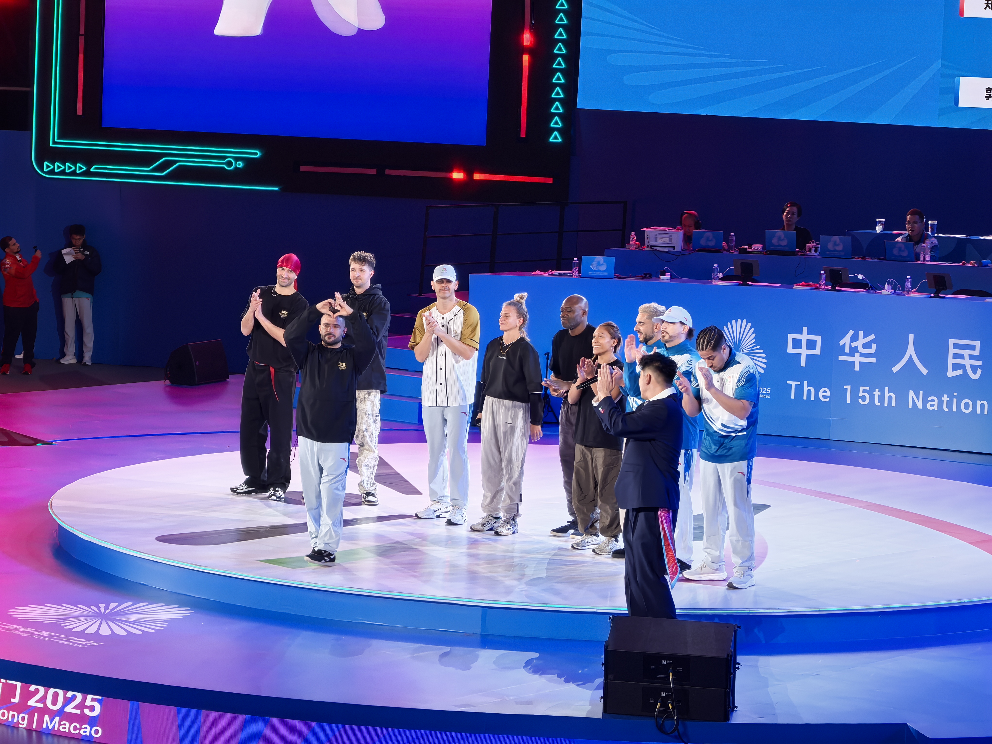 “裁判秀”的背后,也映射出全运会的多元与包容。当人们印象中西装革履、不苟言笑的赛场“执法者”从技术官员席走向聚光灯下的舞台,展现出他们活力四射、激情澎湃的一面,让观众看到的是霹雳舞运动的独特魅力,也是全运会的别样精彩。
